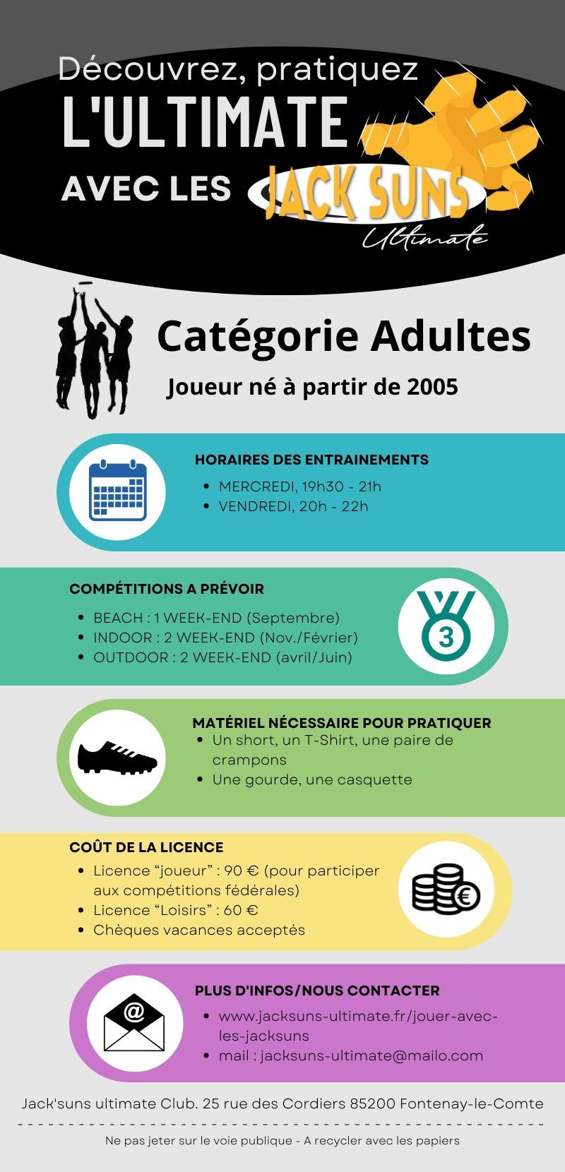 IMPORTANT : de septembre à novembre, les entraînements ont lieu à la plaine des sports. En novembre, les entraînements se déroulent en salle, au gymnase de l'INCAF 2 (rue Jarnigande, près du Château de Terre-Neuve)