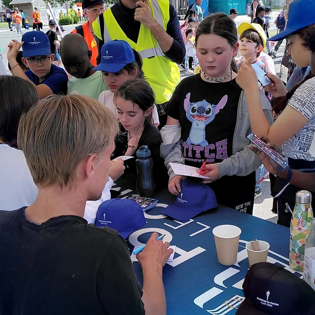 Pour faire connaître son sport, se faire connaître, développer du réseau, il faut parfois forcer sa nature et sortir de sa pratique sportive (J'avoue : je suis plus à l'aise sur un terrain qu'en réunion publique). Le 3 juin, j'étais à Fontenay, à une réunion sur le thème "sport et entreprise". Au programme, des témoignages d'anciens champions sur la vie des sportifs de haut niveau, la manière de concilier sport et études, la reconversion professionnelle... Plutôt intéressant. Le 4, avec plusieurs autres jeunes sportifs, j'ai participé aux festivités autour du passage de la flamme à Fontenay le Comte. Un moment très sympa, avec tous ces enfants si fiers que des "grands sportifs" (c'est nous ) leur signent un autographe.