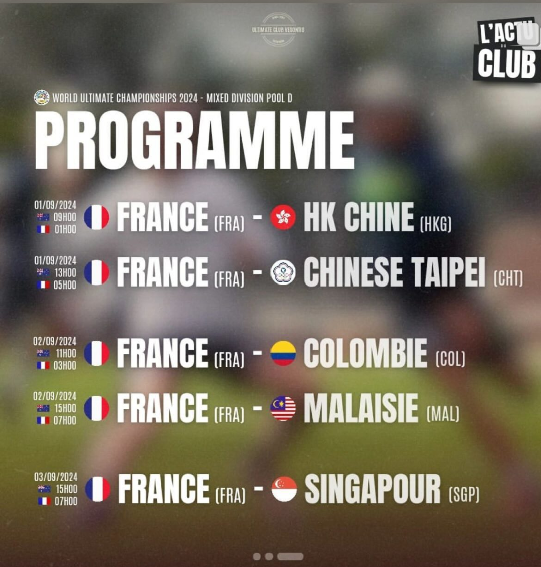 Avant l’été, l’équipe de France participe à deux tournois internationaux. Nous ne sommes pas au top à Fribourg. En revanche, alors que nous avions terminé 7e l’an dernier du Windmill 2023, nous terminons 2e du Windmill 2024, en perdant la finale contre la Tokay SuperTeam (une équipe constituée de « stars » de l’ultimate mondial). Une performance encourageante pour les championnats du monde, qui montre que nous pouvons rivaliser avec les meilleurs.